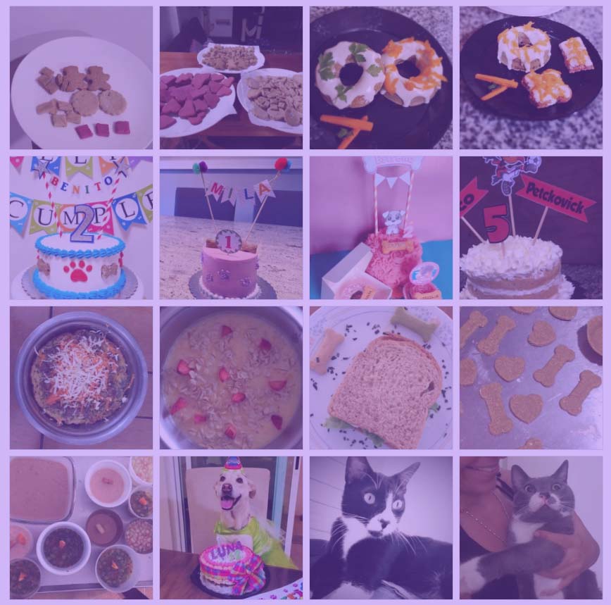 Al comprar el curso podrás integrarte al grupo exclusivo de Facebook en el que más de 1300 usuarios comparten a diario sus experiencias, trucos, recetas, fotos de sus creaciones pasteleras y adorables momentos con sus mascotas. Desliza abajo para ver algunas imágenes.